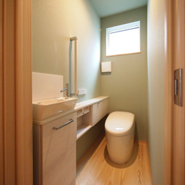 大きな吹き抜けが解放的な1階には全ての水回りがプランされています。