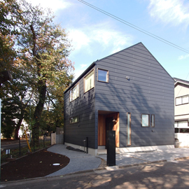 都立小金井公園まで徒歩圏内のエリアに三角屋根が印象的な2階リビングの家が完成しました。シンプルな外観からは分からない、木の暖かみが感じられるお住まいです。すぐ隣には車の通らない緑道があるので、散歩やサイクリングを気軽に楽しむことができます。