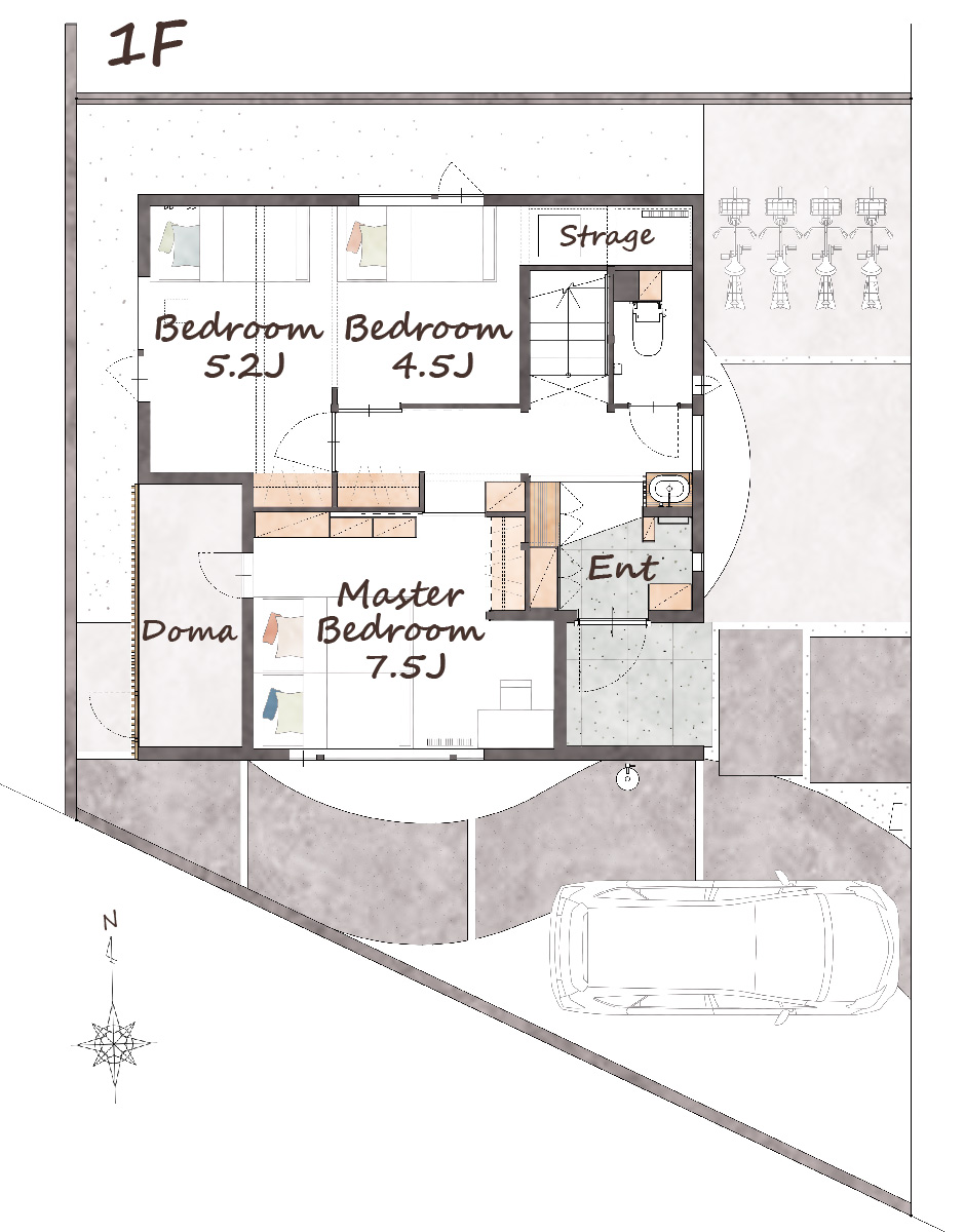 小平市を囲む緑道沿いに、家族4人が暮らす、2階リビングの家が完成します。