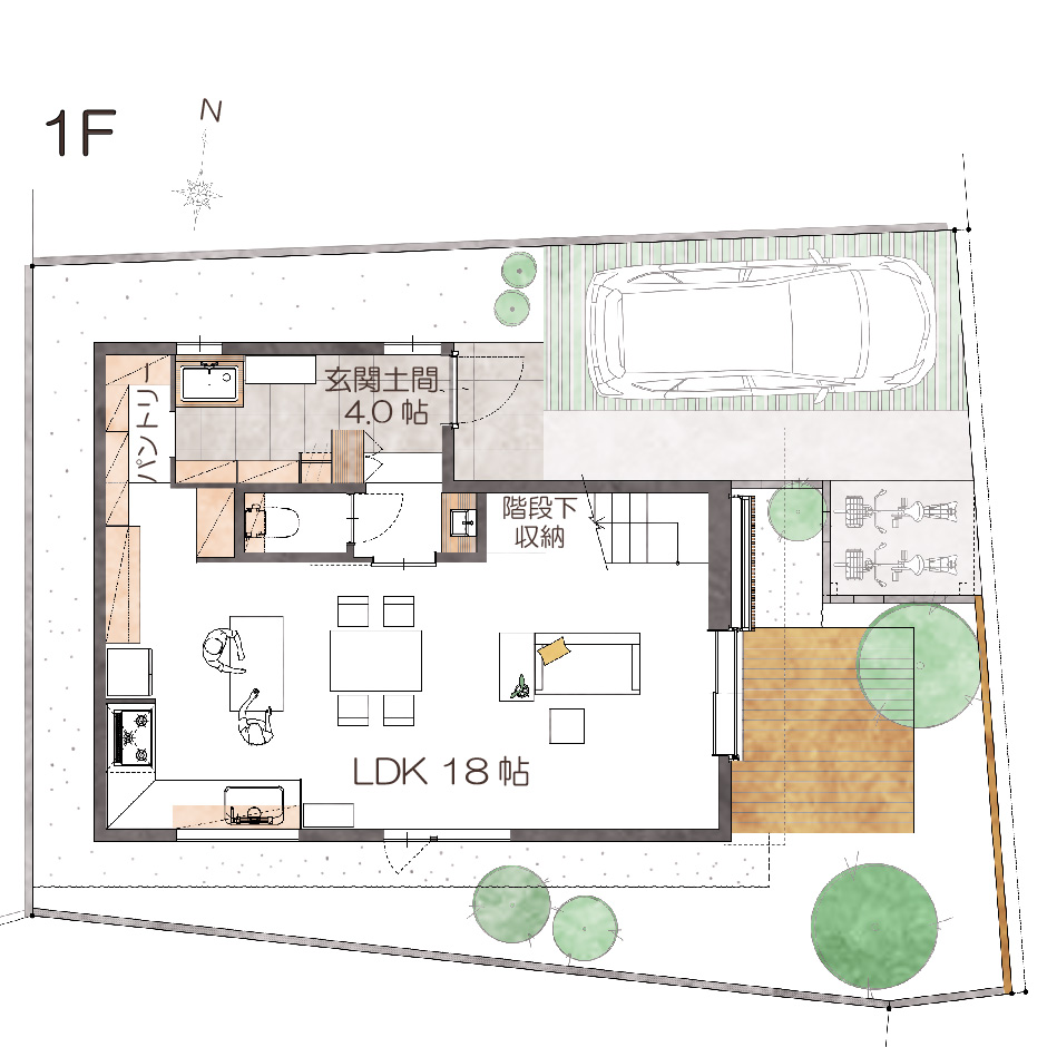 | ※標準装備: | 床下エアコン暖房システム、熱交換型同時吸排気換気扇、樹脂サッシ(アルゴンガス入り)、屋根セルロースファイバー断熱、食洗器・浄水器・ガラストップコンロ、タンクレス便器、ノンレール吊戸、無垢杉床板、LED照明 |